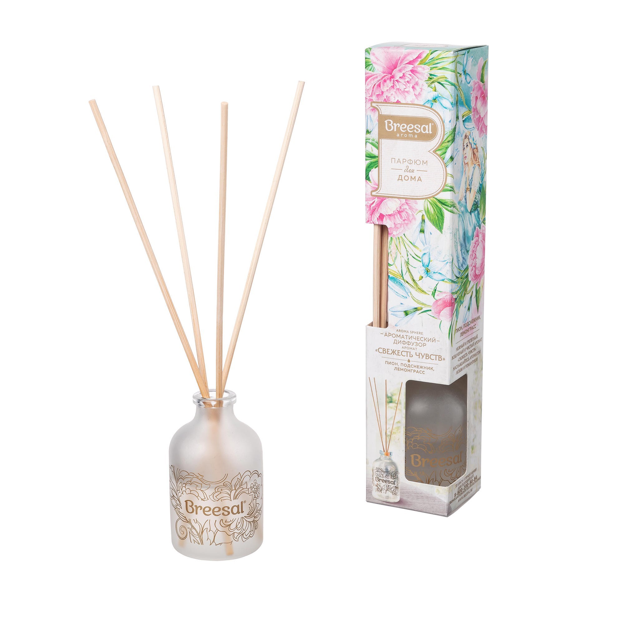 Аромат пиона, подснежника, лемонграсса.Назначение: для устранения неприятных запахов, освежения и ароматизации воздуха жилых помещений, ванных и туалетных комнат.