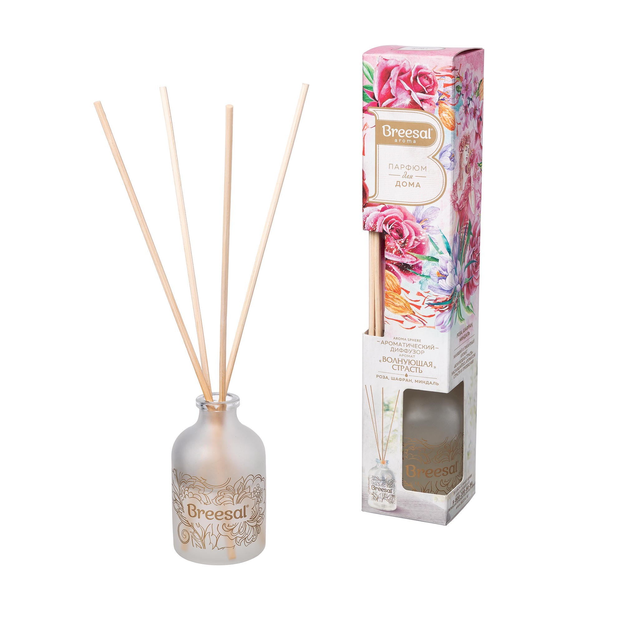 Аромат розы, шафрана, миндаля.Назначение: для устранения неприятных запахов, освежения и ароматизации воздуха жилых помещений, ванных и туалетных комнат.