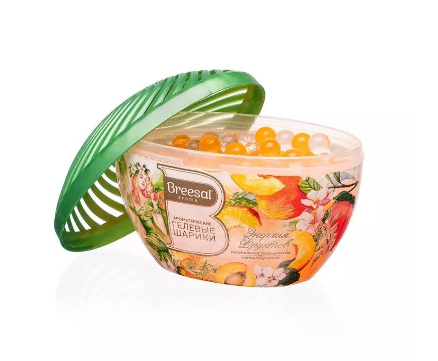 Breesal ароматические гелевые шарики aroma drops энергия фруктовАроматические гелевые шарики Fresh Drops от Breesal — это отличная альтернатива классическому освежителю воздуха для дома. Полупрозрачные, до краев наполненные изысканной парфюмерной композицией, они прекрасно подходят для ароматизации небольших помещений. Освежитель воздуха гелевый в формате шариков идеален для размещения в коридоре или прихожей, лоджии или кладовки, в ванной или туалетной комнате. Такой ароматизатор для дома можно также поставить у изголовья кровати или любимого кресла, где вы часто отдыхаете. Тропическая композиция «Энергия фруктов» взбодрит и вскружит голову ароматами сладкого персика, экзотического манго и свежими нотками киви, заполнит вас энергией и закружит в танце. Наслаждайтесь прекрасным фруктовым ароматом до 45 дней. Для усиления аромата рекомендуем периодически встряхивать шарики в упаковке. Breesal — парфюм для вашего дома!