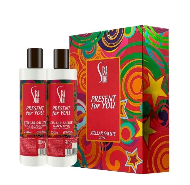 Present for you stellar salute подарочный набор шампунь 250 + гель для душа 250 женФормула шампуня позволяет мягко и бережно очищать волосы и кожу головы. Способствует дополнительному уходу за волосами, делая их красивыми, пышными и легкими в расчесывании. Обладает приятным ароматом.