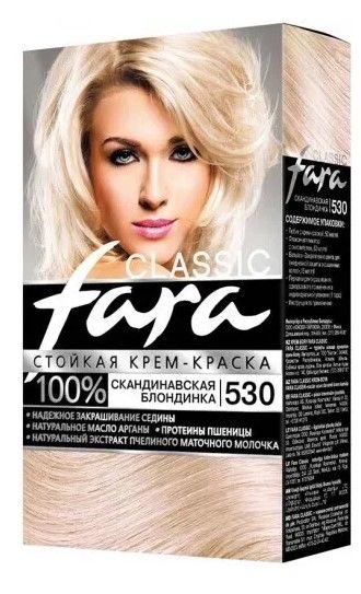 КЛ фара 530 краска для волос скандинавский блондFara Classic – СТОЙКАЯ крем-краска для волос. Активная формула краски с кондиционирующим компонентом способствует более глубокому проникновению цветовых пигментов в структуру волос, обеспечивая длительную защиту цвета. Протеины пшеницы восстанавливают структуру волос, делая их здоровыми и блестящими. Бальзам «Закрепление цвета» с натуральным экстрактом пчелиного маточного молочка и 100% натуральным маслом Арганы питает окрашенные волосы изнутри и восстанавливает их по всей длине. НАДЕЖНОЕ ЗАКРАШИВАНИЕ СЕДИНЫ СТОЙКИЙ, СИЯЮЩИЙ, ЯРКИЙ ЦВЕТ МЯГКИЕ И ЭЛАСТИЧНЫЕ ВОЛОСЫ ПОСЛЕ ОКРАШИВАНИЯ.