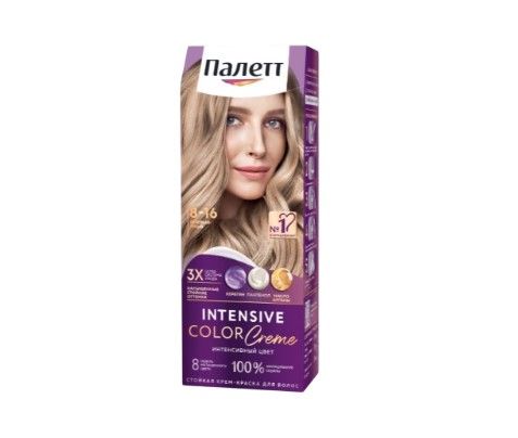 Палетт крем краска для волос пепельно русый 8.16Благодаря тройной системе ухода с Кератином, Пантенолом и Аргановым маслом, стойкая крем-краска Палетт «Интенсивный цвет» становится идеальным помощником в достижении красоты, силы и здоровья ваших волос.