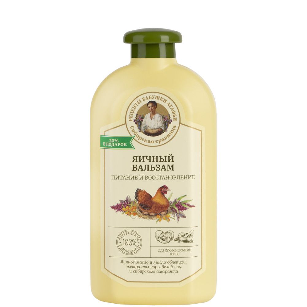 Сибирская Травница бальзам для сухих и ломких волос питание и восстановление яичный 500 млПомочь сухим и ломким волосам может испытанное средство – яичный желток и масло. И то, и другое содержится в бальзаме для сухих и ломких волос РЕЦЕПТЫ БАБУШКИ АГАФЬИ Сибирская Травница Питание и восстановление. Яичный желток помогает волосам сохранять влагу, облегчает расчесывание, придает мягкость. Облепиховое масло витаминами насыщает, делает локоны блестящими. Кора белой ивы способствует укреплению, а сибирский амарант лечит ломкие волосы, не дает им обезвоживаться, дарит блеск. Применяй яичный бальзам регулярно после использования шампуня, и скоро убедишься в силе яичного масла – волосы сухие и ломкие станут упругие, шелковистые и блестящие.