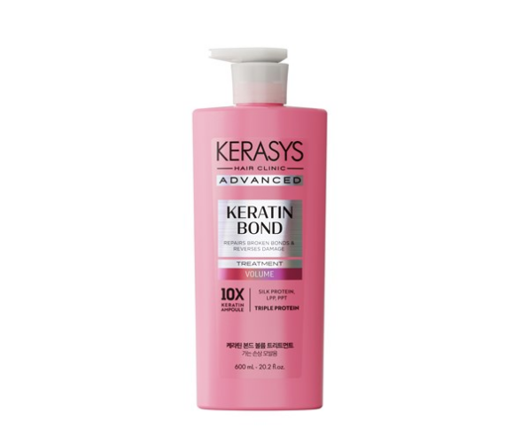 KeraSys кератин бонд бальзам объем 600 млСпециально разработанная формула для восстановления эластичности и объема поврежденных, ослабленных, тонких волос без объема с коллагеном, биотином (витамин В7), экстрактом черной фасоли.