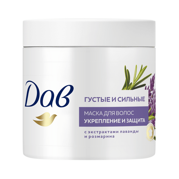 Дав густые и сильные маска для волос укрепляющая и защищающая лаванда и розмарин 500 млСекреты ухода за волосами из самой Франции вдохновили нас на создание коллекции Дав Секреты питания, чтобы каждая женщина могла открыть для себя ритуалы красоты и попробовать глубокое' питание от Дав, в сочетании с экзотическими натуральными ингредиентами. Маска для волос увлажняющая и питательная Дав Густые и Сильные с экстрактами лаванды и розмарина превратит рутинные процедуры по уходу за волосами в изысканный спа ритуал. С ней вы сможете насладиться моментом ухода за собой и оценить ее впечатляющий эффект, не выходя из дома! Экстракты лаванды и розмарина, входящие в питательную и укрепляющую формулу средства, известны своими питательными свойствами. Маска для волос восстанавливающая женская дарит притягательный блеск и гладкость каждому волосу. После применения локоны становятся упругими, увлажненными и более устойчивыми к повреждениям. Увеличивается плотность и улучшается общее состояние волос. Уходовый косметический продукт для легкого расчесывания волос обеспечивает восстановление, укрепление, питание и увлажнение тонких волос. Розмариновая маска для волос парфюмированная подходит для любого типа локонов, в том числе для сухих, окрашенных и поврежденных. А также для жирных, пористых, мелированных и осветленных блондинок.
