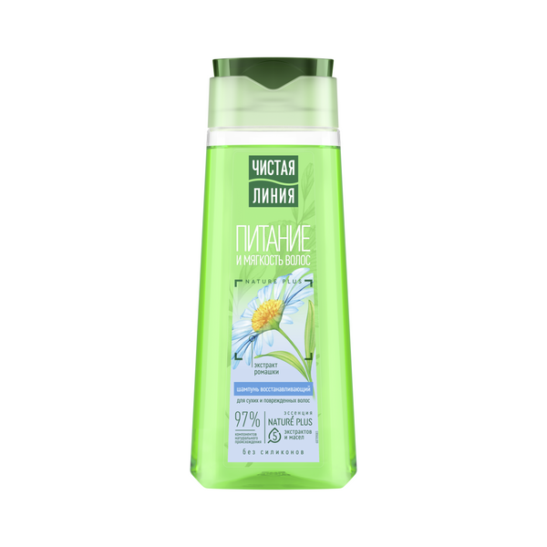 Чистая Линия шампунь восстанавливающий питание и мягкость для сухих волос с экстрактом ромашки 250 млВстречайте любимый шампунь с усиленной формулой1 и в обновленном дизайне! Зачастую мы сталкиваемся с проблемой сухих и поврежденных волос. Ежедневное использование фенов, плоек и утюжков только усугубляет ситуацию. Эксперты бренда Чистая Линия разработали серию продуктов на отваре целебных трав с экстрактом ромашки для сухих и поврежденных волос. Шампунь восстанавливающей серии на 97% состоит из компонентов натурального происхождения. Эссенция 5 Plus – НЕЙЧЕ ПЛЮС содержит 5 экстрактов и масел (экстракты вербены, шалфея, шиповника, масло миндаля и льна). Тщательно отобранные по своим ключевым свойствам активные натуральные компоненты предупреждают выпадение, питают и защищают волосы от повреждений. - Экстракт вербены известен своими успокаивающими и общеукрепляющими свойствами. - Шалфей способствует питанию кожи головы, укреплению и росту волос*. - Шиповник богат витаминами и известен своими восстанавливающими свойствами, стимулирует рост волос*. - Масло льна питает и смягчает кожу и волосы. - Миндальное масло нормализует секрецию, восстанавливает и придает здоровый блеск. - Цветы ромашки придают волосам естественный блеск и мягкость. - Репейное масло интенсивно питает корни и восстанавливает волосы по всей длине*. Результат – естественно красивые, гладкие и блестящие волосы.