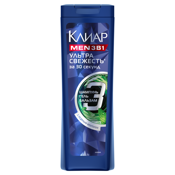 Клиар шампунь для волос ультра свежесть 400 млКлиар Ультра Свежесть — шампунь 3 в 1 мужской с новой гелевой формулой с пироктон оламином и ледяным ментолом. Средство сочетает в себе сразу три уходовых продукта: шампунь против перхоти, бальзам-ополаскиватель и гель для душа. Оптимальное решение для ухода за телом, кожей головы и волосами! Начните свой день с максимальной свежести’ волос и тела вместе с мужским шампунем 3 в 1 от бренда Клиар: - Формула шампуня для волос действует еще быстрее’’: средство смывает бактерии и загрязнения всего за 30 секунд. - Пироктон оламин в составе шампуня для мужчин оказывает антибактериальный эффект, избавляет от перхоти’’’, зуда и шелушения’’’’. - Ледяной ментол оказывает охлаждающее действие и оставляет длительное чувство свежести. - Фужерно-древесный аромат шампуня против перхоти мужского гармонично раскрывается на волосах и теле. - Шампунь мужской от перхоти не пересушивает кожу головы и оказывает питающее действие благодаря ухаживающим компонентам. - Средство подходит для ежедневного применения. Его можно использовать как шампунь и бальзам-ополаскиватель для волос, гель для душа мужской. Шампунь Клиар Ультра Свежесть — идеальное решение для тех, кто ценит свое время и выбирает комплексные средства для ухода за волосами и телом. Будьте уверены в себе, заряжайтесь бодростью и наслаждайтесь свежестью весь день вместе с Клиар! Клиар — эксперт в уходе за кожей головы и волосами.