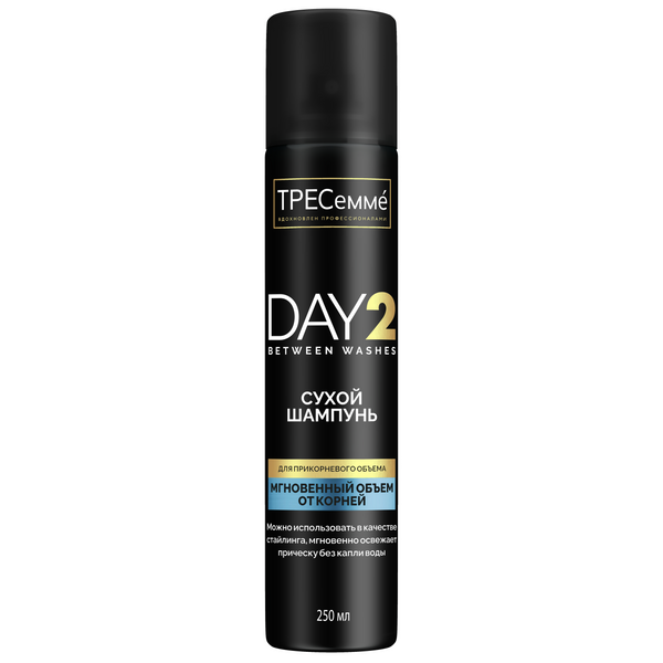 ТРЕСеммé сухой шампунь спрей для объема у корней волос женский 250 млНе успела помыть голову, уже опаздываешь и нужно привести волосы в порядок за пять минут? Сухие шампуни TRESemmé из новой коллекции TRESemme DAY2 избавят от необходимости мыть голову каждый день! Долгое путешествие, утро после веселой вечеринки, отключили горячую воду — оставайся неотразимой в любой ситуации с сухим шампунем TRESemmé. Коллекция сухих шампуней для волос Тресемме создана по технологии очищения без воды. Она абсорбирует излишки кожного сала и загрязнения, легко устраняет белый налет. Поэтому после нанесения средства волосы можно просто расчесать — и твои волосы чистые без лишних усилий! В линейке TRESemmé в России уникальные формулы шампуня разработаны специально для разных типов волос. В линейку TRESemmé DAY2 входят: шампунь для экстра-объема с эффектом стайлинга, шампунь для мега свежести и чистоты без жирных корней и мини-сухой шампунь, который удобно брать с собой в путешествие или носить в сумке. Шапка больше не проблема для укладки — сухой шампунь можно использовать как бустер объема даже на чистых волосах. TRESemmé — это уход с видимым эффектом свежей укладки. Выгляди идеально, когда день расписан по часам — всего пара нажатий вместо утомительного мытья с водой и сушки феном!