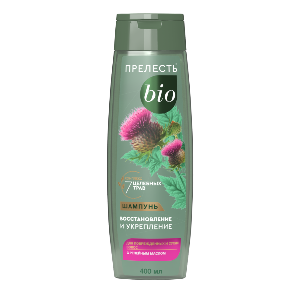 Прелесть Био шампунь восстановление и укрепление для поврежд и сухих волос с репейным маслом 400 мл