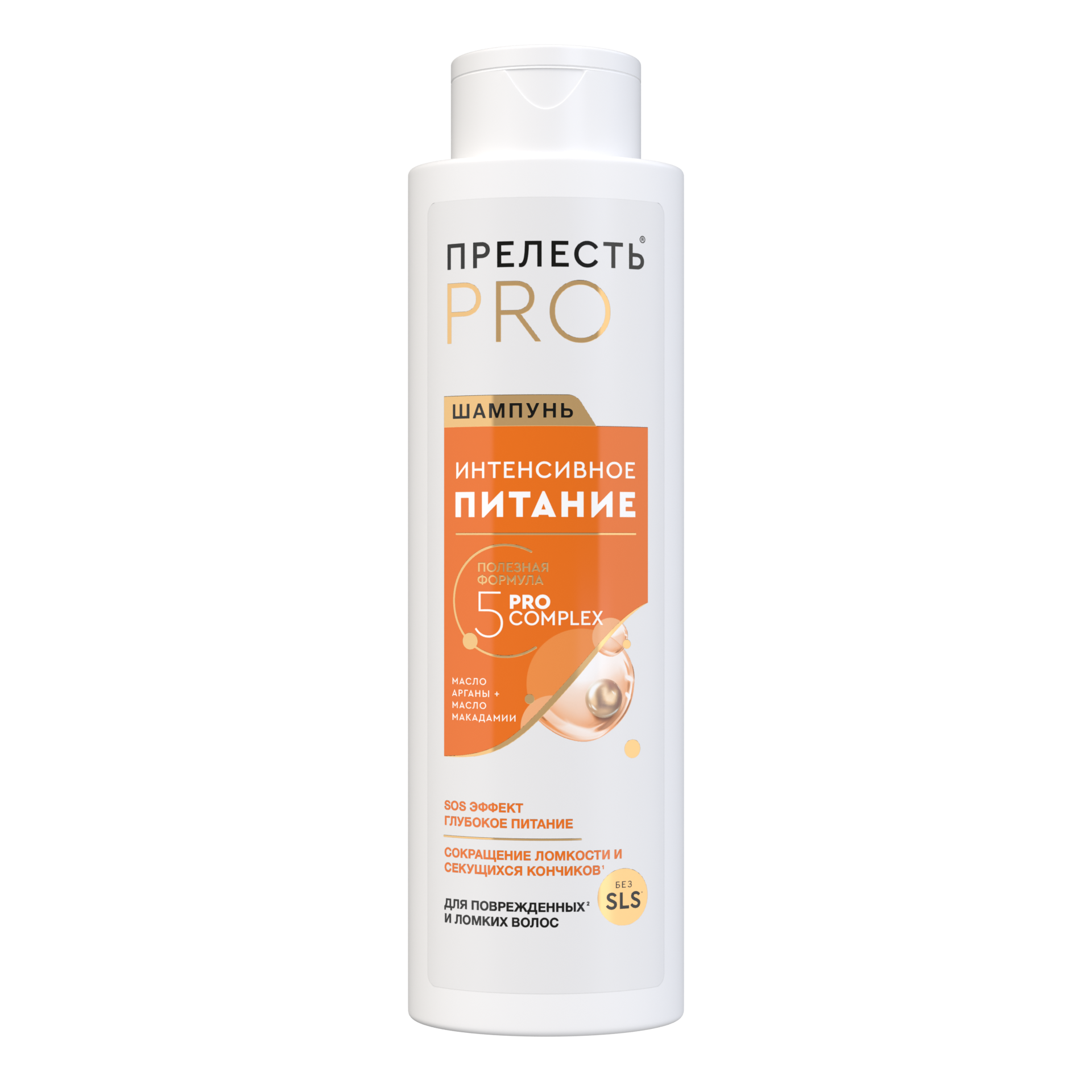 обеспечит вашим повреждённым и ломким волосам эффективный уход, в котором они нуждаются и которого заслуживают. Питательный шампунь содержит масла арганы и макадамии, которые моментально проникают в структуру волос, способствуя восстановлению естественного баланса влаги и питательных веществ. Насыщая волосы изнутри и снаружи, шампунь возрождает волосы клетка за клеткой, делая их мягкими и эластичными, не утяжеляет их. Формула шампуня, также содержит комплекс масел и микроэлементов 5PRO 3 который дополнительно ухаживает за волосами, обеспечивая дополнительное питание, великолепный здоровый внешний вид и блеск.1 Эффект от шампуня с активным составом заметен с первого применения, а при регулярном использовании он сделает волосы более крепкими, поможет отрастить здоровую длину. Для достижения максимального эффекта используйте в сочетании с бальзамом Прелесть Professional «Интенсивное питание» и маской Прелесть Professional «Интенсивное питание» для дополнительного ухода.