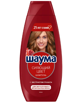 Shauma шампунь сияющий цвет 360 млДля окрашенных и мелированных волос. Сохраняет цвет и интенсивный блеск. С экстрактом граната.