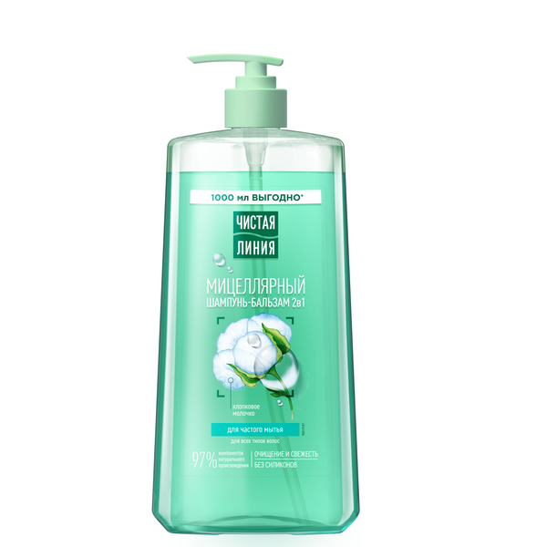 Чистая линия шампунь бальзам 2 в 1 мицеллярный с хлопковым молочком 1000 мл
