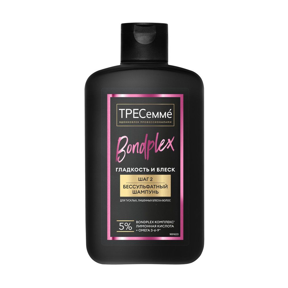 ТРЕСеммé гладкость и блеск шампунь бессульфатный очищение увлажнение блеск 280 млЖенский бессульфатный шампунь ТРЕСеммé Гладкость и блеск предназначен для ухода за тусклыми волосами, лишенными блеска. Это инновационное* средство - новинка для увлажнения, восстановления и укрепления пористых и поврежденных волос у женщин и девушек.
