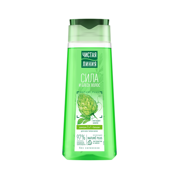 Чистая Линия шампунь бальзам 2в1 сила и блеск для всех типов волос с экстрактом хмеля без силиконов 250 млВстречайте любимый шампунь с усиленной формулой1 и в обновленном дизайне! Шампунь 2 в 1, разработанный экспертами бренда Чистая Линия, сочетает в себе мягкое очищение шампуня и уход кондиционера для волос. В составе 97% состоит из компонентов натурального происхождения. Подходит для всех типов волос. Новая формула шампуня содержит эссенцию Nature Plus – НЕЙЧЕ ПЛЮС из 5-и экстрактов и масел. Активные натуральные компоненты предупреждают выпадение, питают и защищают волосы от повреждений: - Экстракт вербены обладает успокаивающим, общеукрепляющим действием. - Шалфей способствует питанию кожи головы, укреплению и росту волос*. - Экстракт шиповника, богатый витаминами и известный своими восстанавливающими свойствами, стимулирует рост волос*. - Масло льна питает, смягчает кожу и волосы. - Миндальное масло восстанавливает секрецию и придает здоровый блеск. - Экстракт хмеля и репейное масло питают корни волос, способствуют их росту*. Бальзам в составе облегчает расчесывание, смягчает и придает блеск. Результат – естественно красивые, крепкие и блестящие волосы.