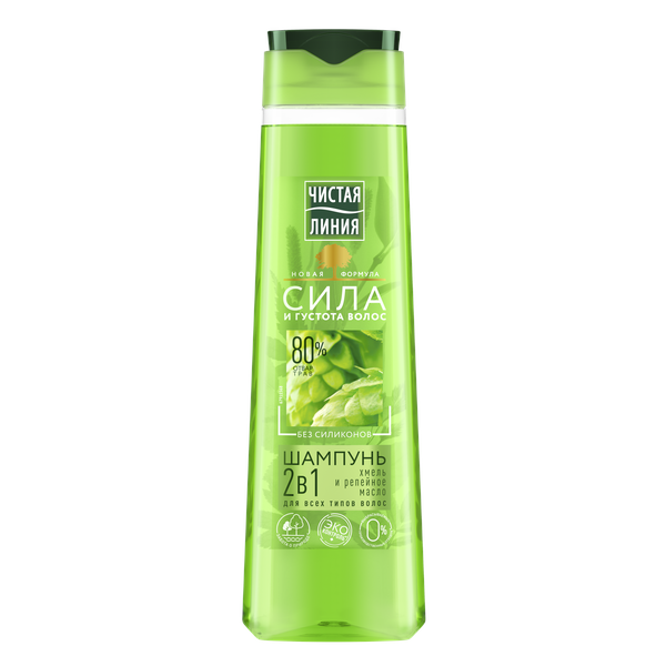 Чистая Линия 2в1 шампунь и бальзам для всех типов волос хмель 400 млНовая формула шампуней ЧИСТАЯ ЛИНИЯ создана для видимой СИЛЫ и ГУСТОТЫ волос. Технология биоферментации делает привычные натуральные компоненты до 60 раз эффективнее. Волосы становятся плотнее и гуще по всей длине. Шампунь для всех типов волос ухаживает за корнями, предупреждает выпадение волос и стимулирует их рост. Активные натуральные компоненты средства питают волосы и, защищая от повреждений, делают их крепче в два раза. Самый популярный шампунь в России! Шампунь + бальзам 2 в 1 для комплексного ухода для всех типов волос. Активные натуральные компоненты средства активизируют рост волос, питая волосяные луковицы, а также обеспечивают комплексный уход - благодаря увлажнению и смягчению волосы защищены от повреждений. Экстракт хмеля широко используется в косметических средствах для ухода за волосами - он эффективно помогает заботиться о красоте волос, укрепляет по всей длине, ухаживает за кожей головы. Шишки хмеля содержат лупулин (сложная смесь различных веществ), эфирное масло, биостимуляторы, гликозиды, витамины группы В и РР. Лупулин оказывает успокаивающее действие.