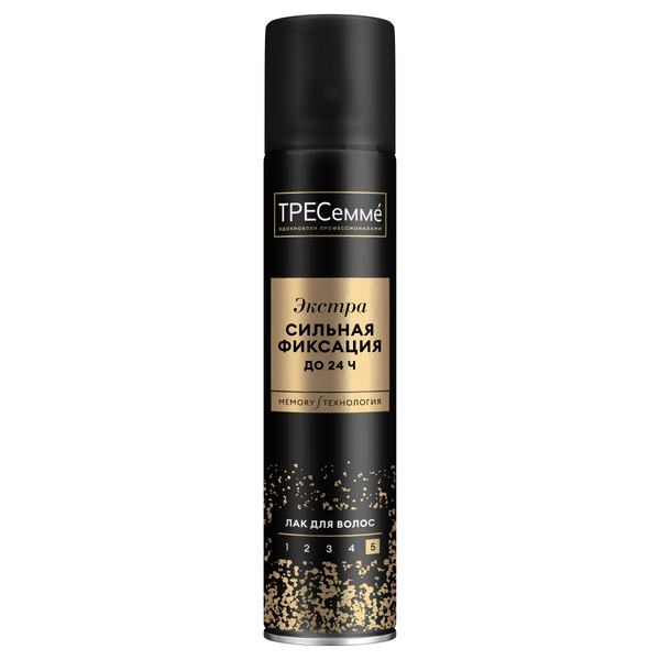 ТРЕСеммé лак для волос экстрасильная фиксация 250 млTRESemmé Hold Collection — лак для волос, вдохновленный профессиональными средствами. Лак с легкой сухой текстурой и мощным действием обеспечивает сверхсильную фиксацию до 24 часов. Создавайте неповторимые образы вместе с лаком для волос от TRESemmé: Уникальная MEMORY-технология запоминает форму прически на весь день. Стайлинг для волос надежно фиксирует прическу в два пшика и закрепляет любую укладку — будь то локоны, объем или гладкие волосы. Средство для укладки волос женское сохраняет подвижность и упругость прически. Лак для волос сильной фиксации легко распыляется и равномерно распределяется по всей длине. Результат — послушные и аккуратные волосы, которые весь день держат желаемую форму. Главное условие успешной укладки — качество волос, поэтому используйте лак в комплексе с другими уходовыми средствами TRESemmé: шампунем для мягкого очищения, кондиционером для интенсивного питания и термозащитой. TRESemmé — выбор миллионов женщин по всему миру. Профессионалы знают: каждая укладка зависит от качества волос. Поэтому в 1948 году в салонах красоты Нью-Йорка был создан TRESemmé — профессиональная основа для создания любого образа.