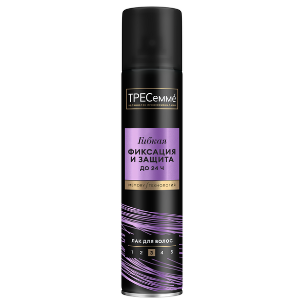 ТРЕСеммé лак для волос гибкая фиксация и защита 250 млTRESemmé Гибкая фиксация и защита — лак для волос, вдохновленные профессиональные средства для укладки. Идеально подходит для создания скульптурных образов, не утяжеляет волосы и фиксирует прическу в течение всего дня. Попробуйте новинку в линейке стайлингов для волос от TRESemmé: - Уникальная MEMORY-технология запоминает форму быстро и обеспечивает надежную фиксацию до 24 часов. - Благодаря невесомой формуле средство для укладки обеспечивает волосам легкое и незаметное покрытие — без эффекта утяжеления. - Лак для волос средней фиксации сохраняет подвижность и эластичность укладок, чтобы волосы выглядели максимально естественно. Чтобы прическа выглядела безупречно, необходимо позаботиться о состоянии волос — этот секрет знают все профессионалы. Поэтому советуем использовать лак для волос в комплексе с уходовыми средствами TRESemmé.