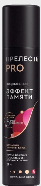 Прелесть Professional лак для волос эффект памяти 75 млСерия для укладки волос "Эффект памяти" содержит в своем составе экстракт бамбука и провитамин, которые повышают упругость волос и насыщают их влагой. Благодаря уникальной рецептуре волосы "запоминают" зафиксированное положение. Форма и объем прически восстанавливаются даже после деформации!