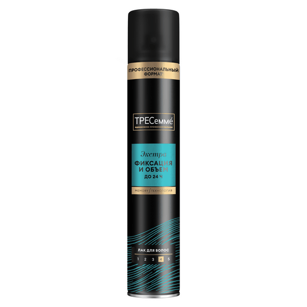 ТРЕСеммé лак для волос экстрафиксация и объем 400 млЛак для волос ТРЕСеммé Экстрасильная фиксация и объем представляет собой продукт, созданный с учетом профессиональных решений в области стайлинга. Благодаря своей легкой сухой текстуре и мощному действию, это средство для укладки волос обеспечивает надежную фиксацию прически и воздушный прикорневой объем на целых 24 часа. Он идеально подходит для создания укладок любой сложности. Новый профессиональный формат' флакона объемом 400 мл позволяет экономично расходовать средство, что гарантирует его длительное использование. С лаком для волос от ТРЕСеммé ты сможешь создавать неповторимые образы, будучи уверенной в стойкости и надежности своей укладки! Лак для волос сильной фиксации разработан с использованием уникальной* технологии, которая запоминает форму прически на весь день. Стайлинг для волос надежно фиксирует прическу всего в несколько пшиков и сохраняет воздушный объем от самых корней до 24 часов. Его особая* формула стойко закрепляет прикорневой объем. Спрей для укладки волос сохраняет подвижность и упругость укладки — волосы держат желаемую форму и при этом выглядят объемными. Фиксатор для волос для укладки подходит для закрепления объема и моделирования прически у женщин-обладательниц кудрявых, вьющихся, тонких и пористых локонов.