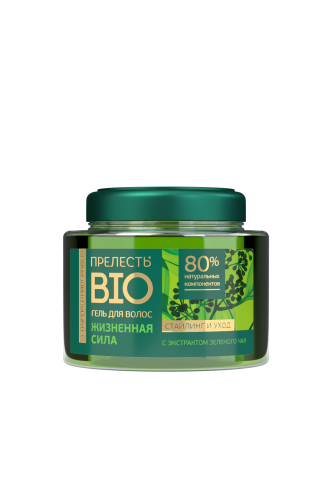 Прелесть био гель для укладки волос с экстрактом зелёного чая сильная фиксация 250 млГель для волос содержит 95% натуральных компонентов в составе.