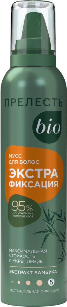 Прелесть био мусс для волос бамбук экстрафиксация 160 млВеликолепно фиксирует укладку и надежно сохраняет ее в течение всего дня, без склеивания и утяжеления. Идеальная укладка, сильные, красивые и здоровые волосы!