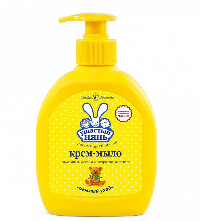 Ушастый Нянь жидкое крем мыло 300млПредназначено для мытья рук и тела. Для нежного очищения кожи детей любого возраста и всей семьи. Имеет естественный рН, не сушит и не раздражает кожу, не содержит парабенов, силиконов, красителей. Не вызывает аллергических реакций, клинически протестировано. Густая гель-формула, пышная пена.