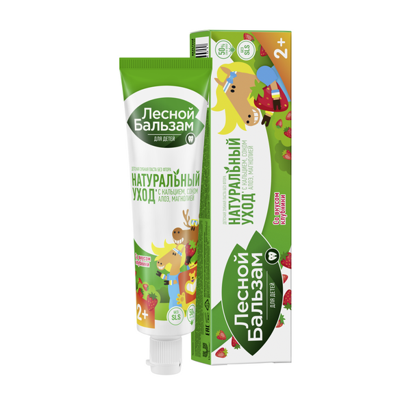 Лесной бальзам паста зубная для детей с 2 лет нежная клубника 50 млДетская зубная паста Лесной бальзам с 2 лет отличается высокими содержанием сока алоэ (50%), содержит кальций для правильного созревания эмали молочных зубов и поддерживает иммунитет полости рта*. Создана совместно с детскими стоматологами, чтобы сделать процесс первой чистки зубов малышка максимально комфортным. Особенности состава: 1) Мягкая абразивная система бережно очищает детскую эмаль, способствует мягкому удалению налета с молочных зубов. 2) Зубная паста имеет самый нейтральный, нежно клубничный вкус, чтобы сделать процесс первой чистки зубов максимально комфортным. 3) Для защиты от бактерий в зубной пасте используется натуральный антибактериальный комплекс на основе экстракта коры магнолии, который нейтрализует действие кислот в полости рта, замедляет образование налета и защищает от кариеса. 4) Зубная паста содержит 50% сока алоэ и оказывает успокаивающее действие на десны, что полезно в период прорезывания зубов 5) Зубная паста содержит кальций для укрепления эмали и не содержит фтор, безопасна при случайном проглатывании 6) без SLS, безе SLES 7) Зубная паста для детей Лесной бальзам 2+ разработана совместно со стоматологами и протестирована на кафедре детской стоматологии, не оказывает раздражающего или токсического воздействия на полость рта.