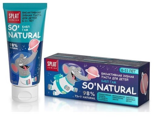 Splat junior зубная паста бабл гам 6-11 лет 73грЭффективная, НАТУРАЛЬНАЯ и БЕЗОПАСНАЯ детская зубная паста.Уникальной запатентованная система LUCTATOL® на основе экстракта японского лакричника до 96% сокращает образование зубного налета и УНИЧТОЖАЕТ кариесогенные БАКТЕРИИ, способствуя защите от кариеса.