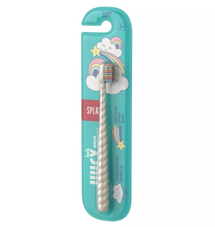 Детская зубная щетка серии Juicy Lab «Магия единорога» с ионами серебра и мягкой щетиной подходит для детей от 5 лет.Магия серебра для максимальной гигиены: ионы серебра предотвращают размножение бактерий в щетине на 99%*