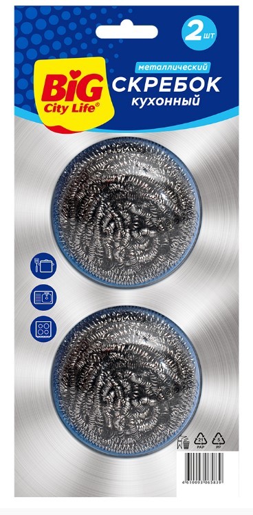 BIG City скребок стальной 2 шт 40шт ящСкребок, предназначен для чистки сильно загрязненных поверхностей, изготовлен из качественной нержавеющей стали. Можно использовать для ухода за кастрюлями из нержавеющей стали, раковинами, кухонными плитами.