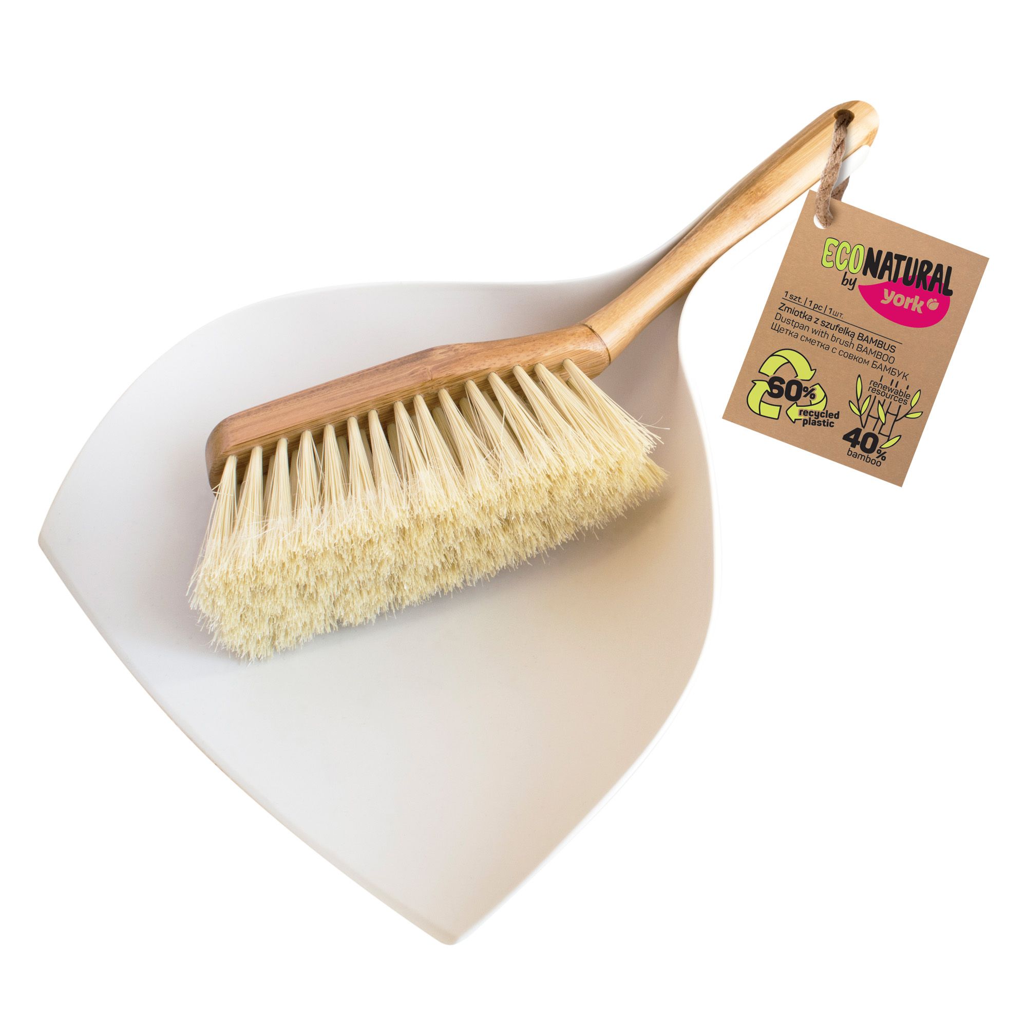 York щётка совок бамбук эко натуралЭкологичные материалы, современный дизайн и эффективность в использовании! Эргономичный профиль бамбуковой щетки обеспечивает комфорт ее использования, при этом щетка не впитывает влагу, не гниет и не создает неприятного запаха. Щетина ПЭТ щетина набита с высокой плотностью и имеет рассеченные концы, что позволяет с первого раза собрать максимальное количество мусора. Большой совок плотно прилегает к поверхности, позволяя таким образом эффективнее собирать мелкие частицы и песок.Размеры: 37 х 25,5 х 8,5см