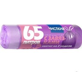Чистюля пакеты для мусора в рулоне стандарт с завязками 65 л*14 штПНД повышенной плотности: на 17% толще обычных пакетов с завязками.