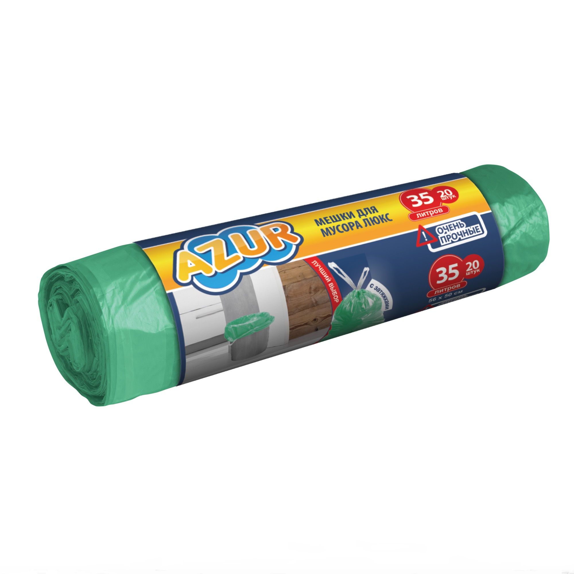 Azur мешки для мусора 35 л 20 шт зеленые люкс с завязкамиОчень прочные пакеты для мусора небольшой емкости. Подходят для ежедневного сбора и сортировки бытовых отходов. Мусорные мешки не протекают и не рвутся, выдерживают большой вес. Пакеты легко отрываются по линии перфорации. Оснащены удобными завязками в виде тесьмы, что облегчает процедуру извлечения пакета из мусорного ведра и его перенос. Затяжки экономят место в мешке, позволяя заполнять его максимально – до самых краев.