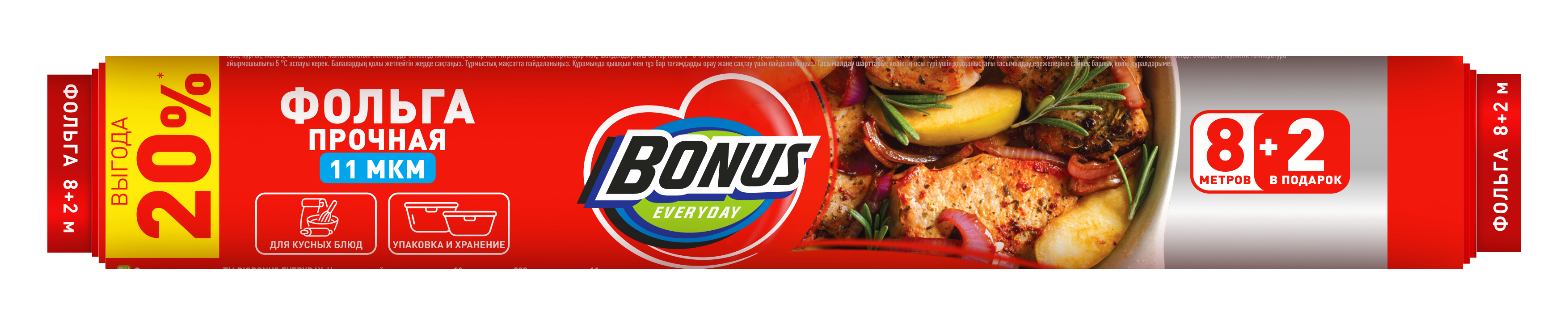 BONUS фольга аллюминиевая пищевая 8+2 метраФольга из аллюминия для хранения, запекания, замораживания пищевых продуктов