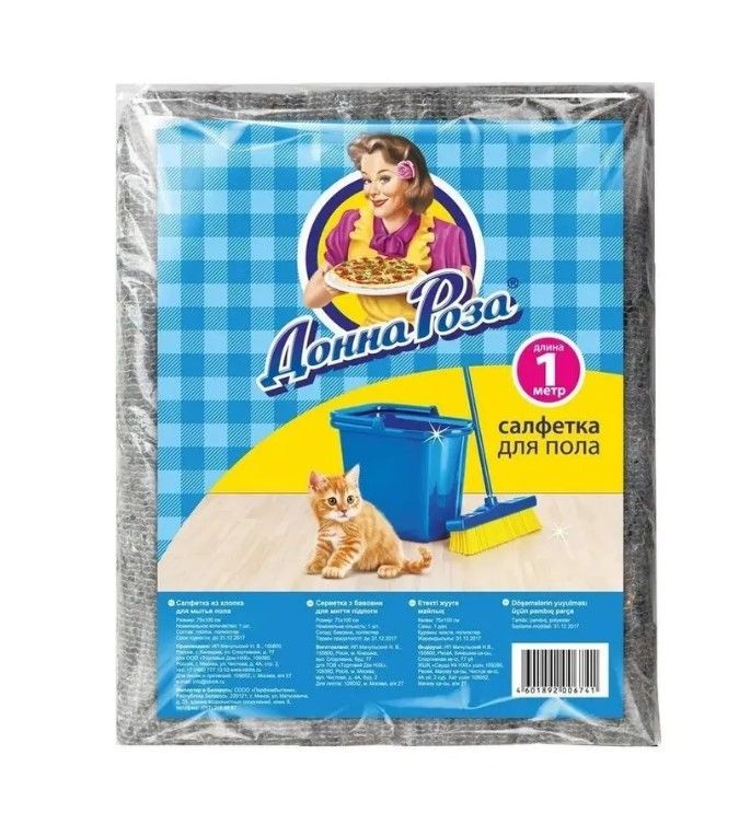 Донна Роза салфетка хб для пола 1шт 75x100Мягкая, приятная на ощупь салфетка нежного оттенка. Хорошо впитывает влагу и вытирает насухо поверхность. Отличное предложение для экономных хозяек. Предназначена для мытья всех видов половых покрытий.