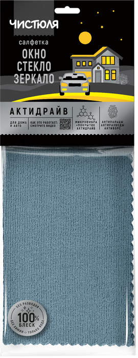 Чистюля салфетка из микрофибры активдрайв окно стекло зеркало дом авто70% микрофибры + 30% PU-покрытие АКТИДРАЙВ