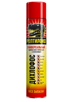 Рептилоид дихлофос 200 млФормула из 3х действующих инсектицидных веществ с самыми высокими концентрациями среди дихлофосов. Эффективен против 10 (!) видов ползающих и летающих насекомых: клопы, тараканы, муравьи, блохи, кожееды, осы, комары, мухи, мошки, бабочки моли. Мгновенное действие и длительный эффект доказаны испытаниями НИИД Роспотребнадзора. Самое выгодное предложение в соотношении цена к убойной силе против наибольшего числа вредителей. Дихлофос Рептилоид – это средство нового поколения с самыми современными и действенными веществами в составе с приятным ароматом без запаха инсектицидных компонентов