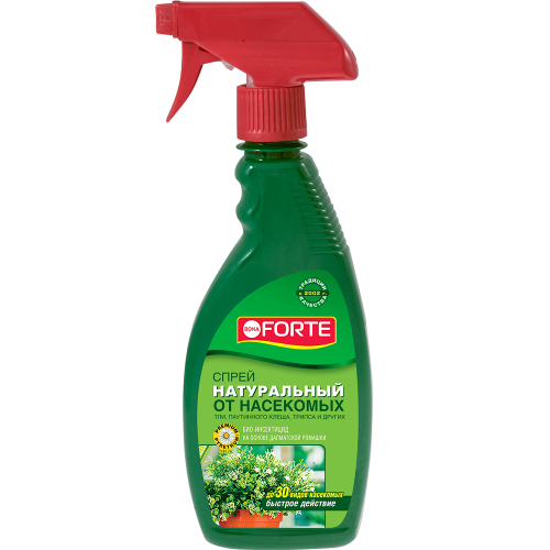 Bona Forte натуральное инсектицидное средство от летающих насекомых вредителей флакон 250 млУничтожает различные виды насекомых-вредителей: от тли, белокрылки, паутинного клеща, гусениц, долгоносиков и других • Высокая эффективность! Мгновенное действие! • Нет привыкания (резистентности) у насекомых • Безопасно! На основе натурального инсектицида • Экономичный расход • Готовое к применению средство