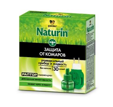 Раптор натурин комплект прибор электрический для борьбы с насекомыми naturin + раптор naturin жидкость от комаров и других летающих насекомыхУниверсальный прибор Naturin предназначен для использования с жидкостями и пластинами Gardex.