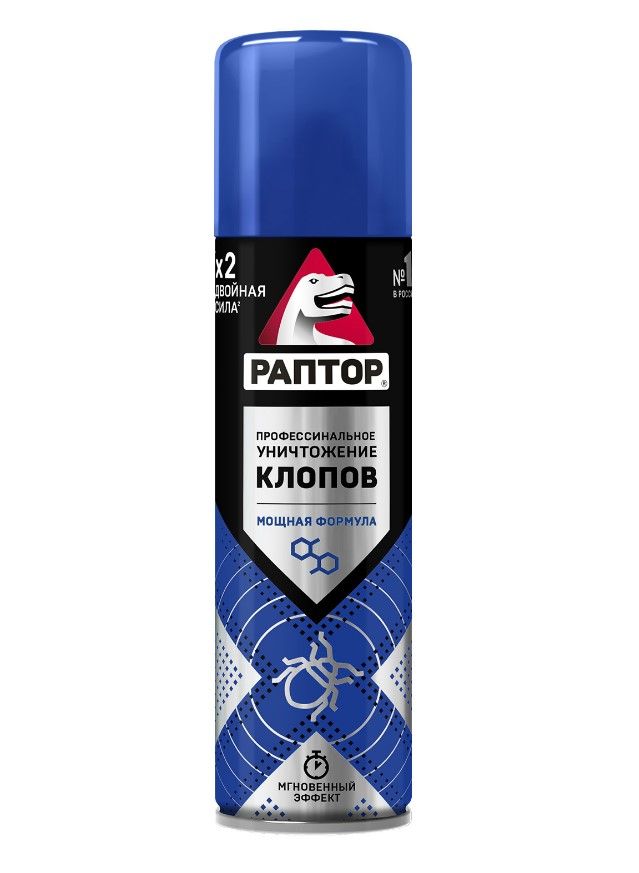 Положите конец этой кровопролитной войне вместе с РАПТОР! С гордостью представляем профессиональное средство от клопов РАПТОР в аэрозольной форме. Инновационная формула с двумя высокоэффективными действующими веществами превращает аэрозоль РАПТОР в мощное оружие, способное с лёгкостью уничтожить не только обычных постельных клопов, но и их резистентных собратьев, отличающихся устойчивостью к другим инсектицидным средствам.