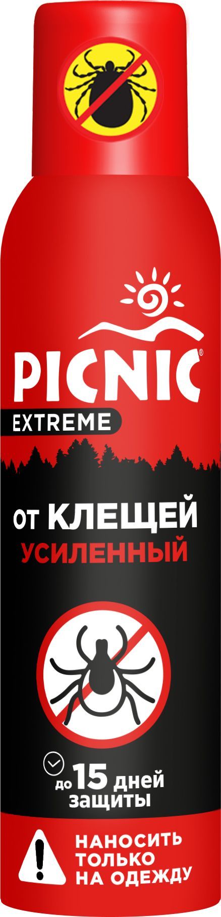 Picnic аэрозоль от клещей 150 млЗащищает от всех видов летающих кровососущих насекомых: комаров, клещей, москитов, мошек, мокрецов, слепней, ос, оводов и прочих в условиях их максимального скопления. Также это эффективная профилактика малярии, энцефалита и лихорадки Западного Нила.
