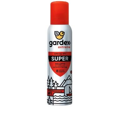 Gardex extreme super аэрозоль от комаров слепней и мошек 150 млЕсли в теплый день Вы собираетесь на рыбалку, пикник, прогулку по лесу или возле водоема, то будьте готовы к рою насекомых вокруг Вас. Хорошо, что есть аэрозоль Gardex Extreme. Благодаря инновационной формуле, средство гарантирует сверхсильную защиту в течении 8 часов от комаров, москитов, слепней, мокрецов, мошек, блох, а также таежных и лесных клещей даже в местах повышенного скопления насекомых.