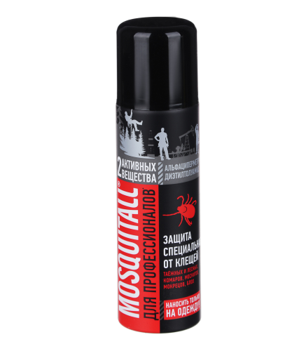 Mosquitall аэрозоль защита от клещей 200 млАкарицидно-репеллентное средство для обработки одежды для защиты от клещей. Аэрозоль защищает от иксодовых клещей, комаров, мокрецов, москитов, блох в местах особой активности насекомых. Оказывает двойное действие: убивает лесных и таежных клещей; отпугивает комаров. Средство на спиртовой основе: быстро высыхает и не оставляет следов на одежде и снаряжении