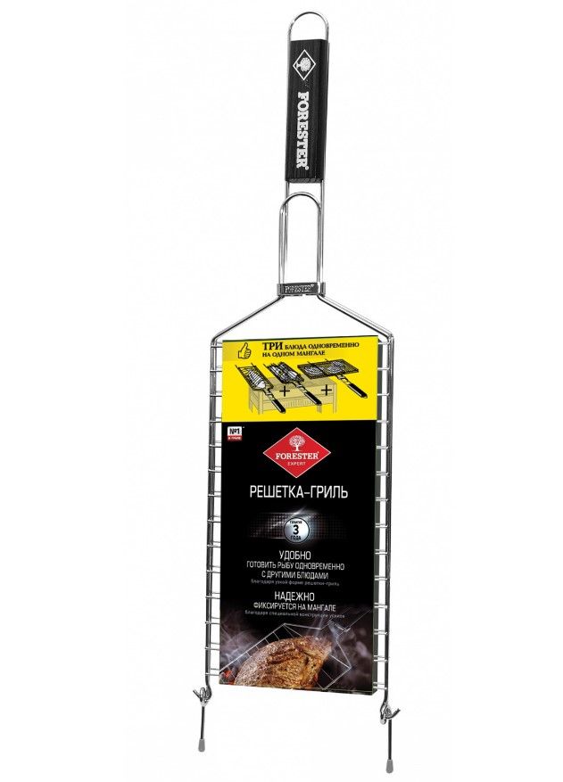 Forester решетка гриль для рыбы newРешетка гриль для рыбы позволяет запечь крупную рыбу или несколько стейков (из рыбы, мяса, птицы), а также пожарить сэндвичи. А узкая форма (ширина всего 14 см!) позволяет приготовить рыбу/стейки ОДНОВРЕМЕННО с основным блюдом практически на любом мангале.