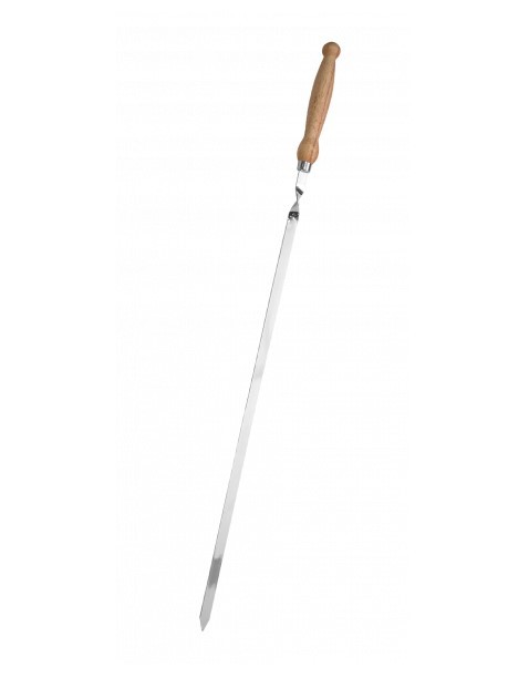 Шампур с деревянной ручкой предназначен для приготовления шашлыков из мяса, птицы, рыбы и овощей.Состав: сталь с коррозионностойким покрытием, дерево, кожа.