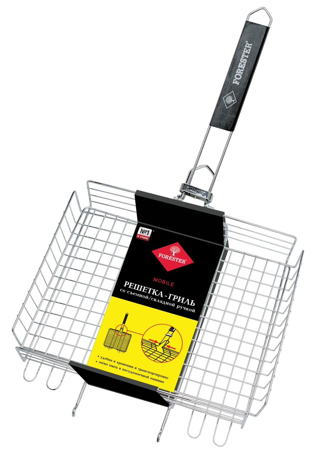 FORESTER MOBILE. Решетка-гриль со съёмной ручкой, универсальная, 24 х 30 см (16) V