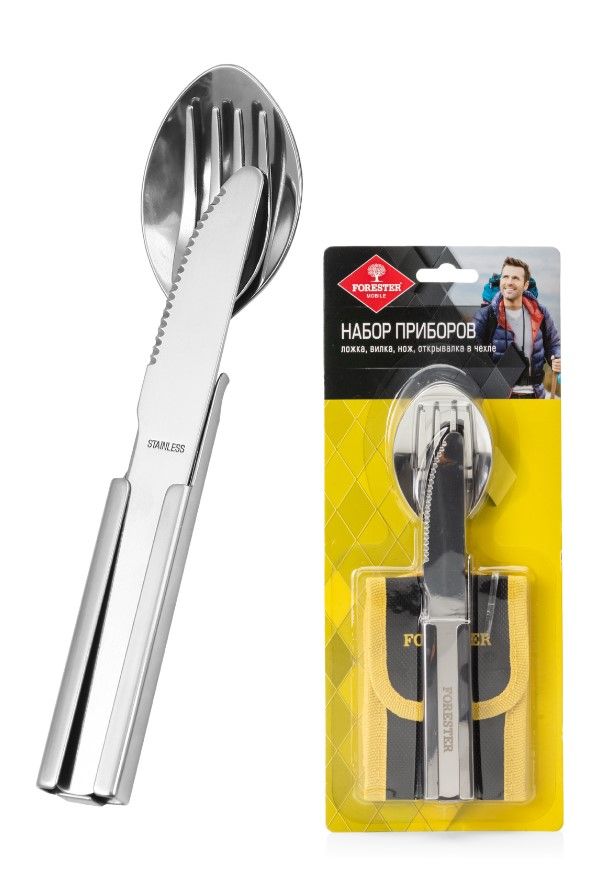 Forester Mobile набор ложка вилка нож открывалка 16-18 см в чехле из нерж стали