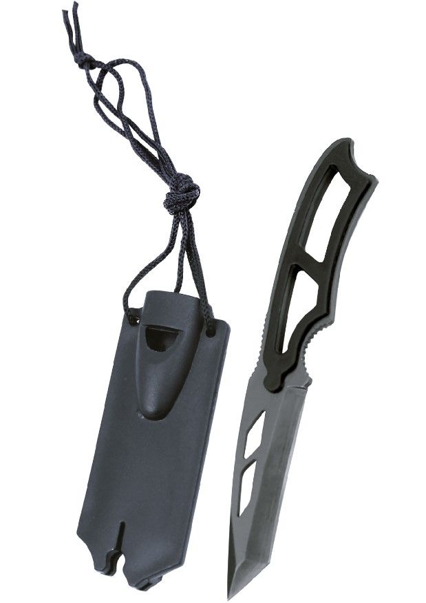 нож удобно носить на груди, так как чехол оснащен шнурком для подвешивания;