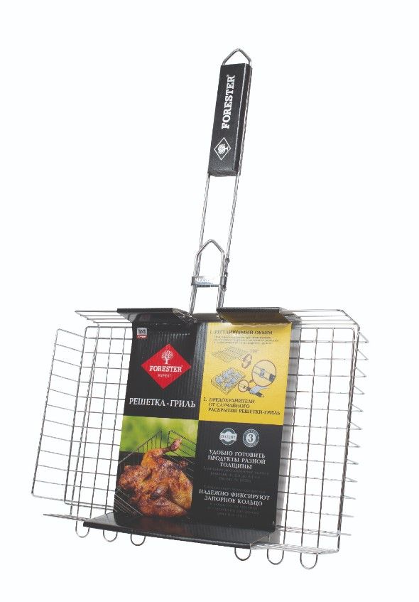 Forester решетка гриль универсальная с регулируемой высотой 24*37 смРешетка-гриль FORESTER 24х37см универсальная (с регулируемой высотой) предназначена для приготовления мяса, птицы, рыбы, овощей на углях. Подходит для запекания продуктов разной толщины. Благодаря рамке-фиксатору решетка устойчиво размещается на мангале. Размер рабочей поверхности 24х37х4,5 см. Толщина металла: Внутренний прут 2 мм, обводка 3,5 мм, ручка 3,5 мм