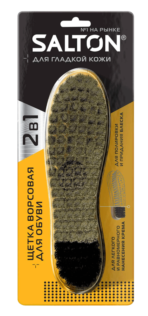 Salton щетка ворсовая для обуви из гладкой кожиВсе ли щётки для обуви одинаковы и в равной степени эффективны? Неправильно подобранная щётка для чистки обуви может нанести вред материалу, испортить поверхность обуви, оставив царапины. Важно понимать, для какой цели и для какого материала будет использован этот аксессуар. Щётки для чистки, ухода и полировки отличаются длиной и жесткостью ворса. Ворсовая щетка для обуви из гладкой кожи Salton – это универсальное удобное средство 2 в 1: одна часть темной щетины служит для нанесения воска или крема, а вторая - для полировки после впитывания защитных и ухаживающих средств. Мягкий ворс бережно скользит по поверхности обуви, не оставляя следов. Деревянный корпус щетки удобно располагается в руке и защищает от случайного соприкосновения с кремом или воском. Ворсовая щетка для очистки обуви Salton поможет сделать уход за любимой обувью безопасным и легким..
